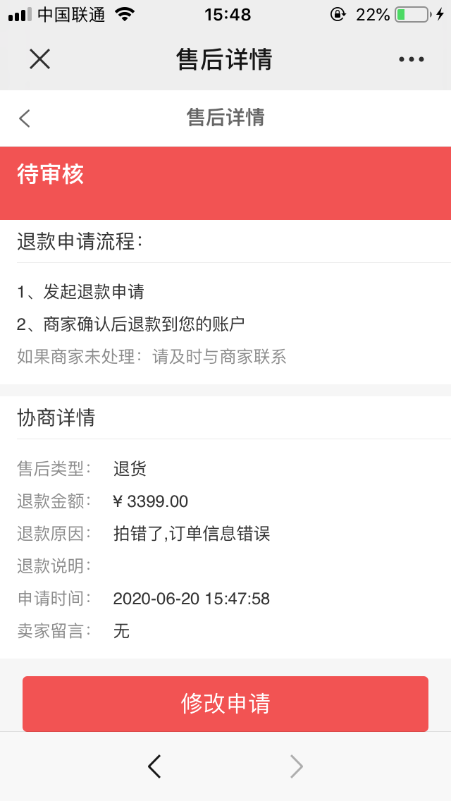 ## ⑴驳回:退款信息有误,可以驳回让买家重新申请,以下是其他申请退款的订单被驳回详细