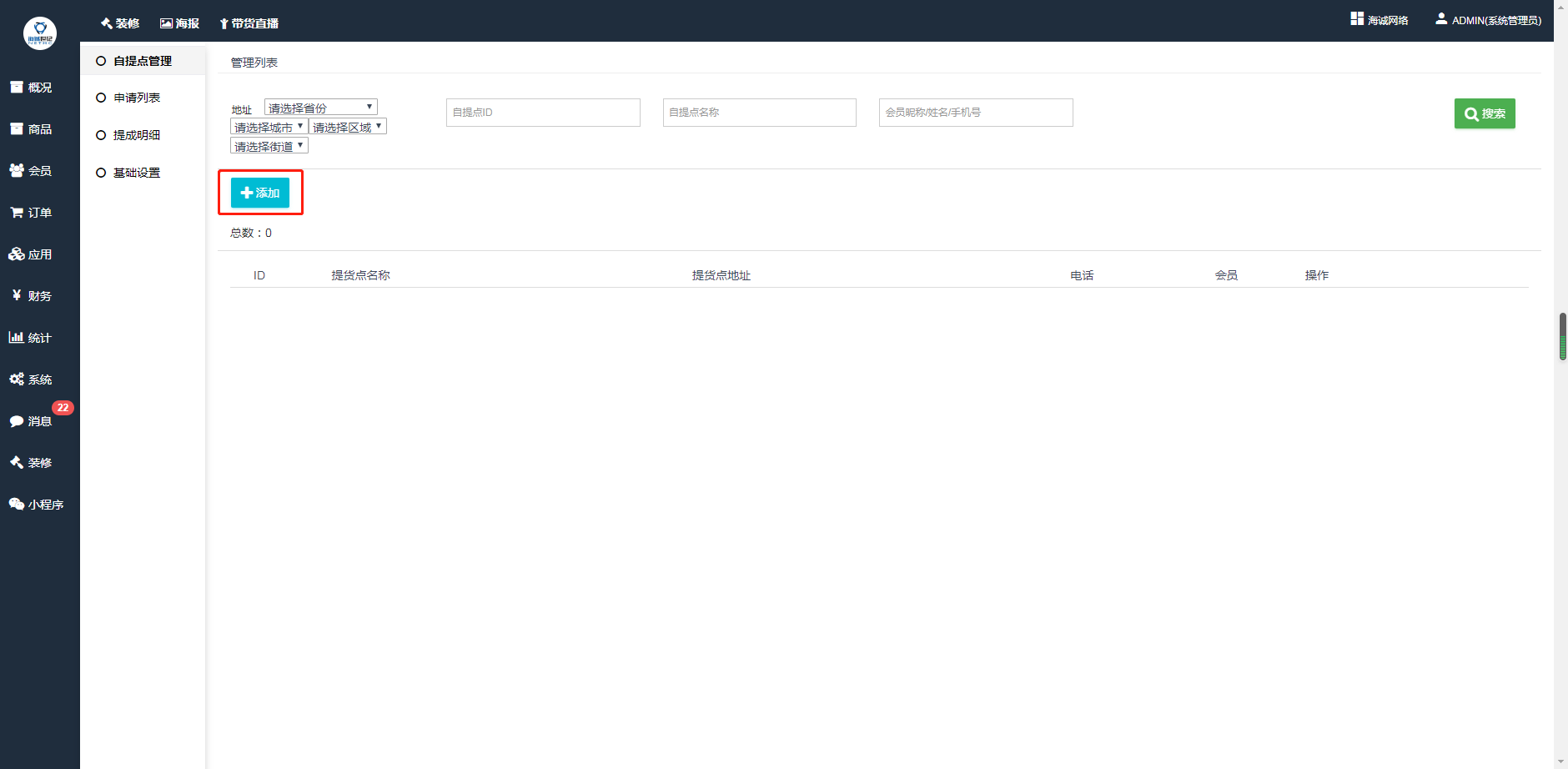 ## ●支持按照自提点地址,ID,名称,会员昵称/姓名/手机号来搜索自提点