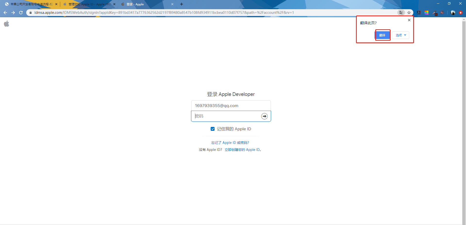 ## **苹果开发者账号注册流程较为繁琐请仔细查看本教程操作,且注册时页面语言均属于英语语言,注册人需要具备一定的英文能力,建议使用QQ游览器或者goole谷歌游览器注册,两款游览器具有页面翻译功能,注册起来比较方便,由于苹果网站服务器均属于在国外,所以苹果网站在国内访问会非常缓慢或打不开等情况,请多刷新页面耐心等待或使用第三方科学上网软件进行访问。**