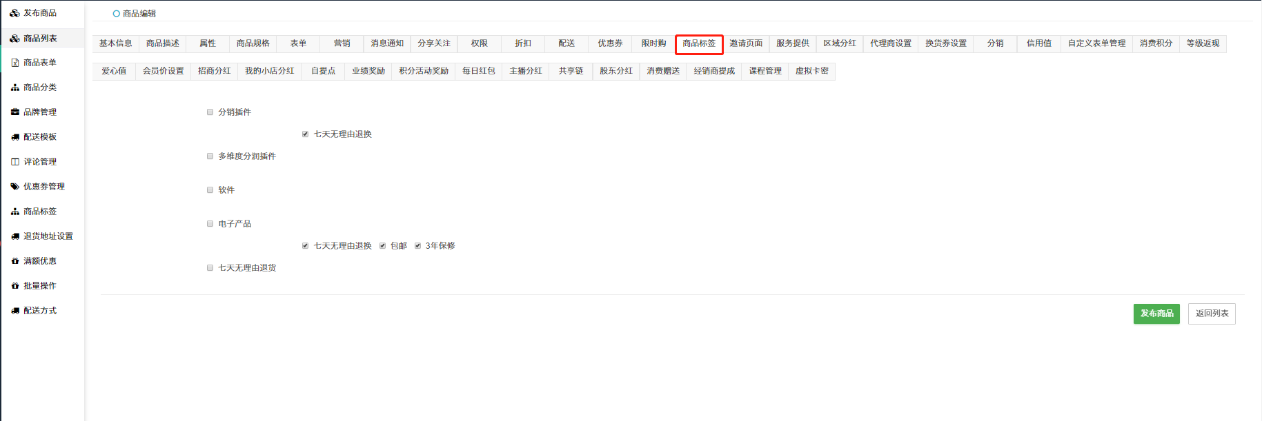 ## 直接勾选已添加的商品标签即可