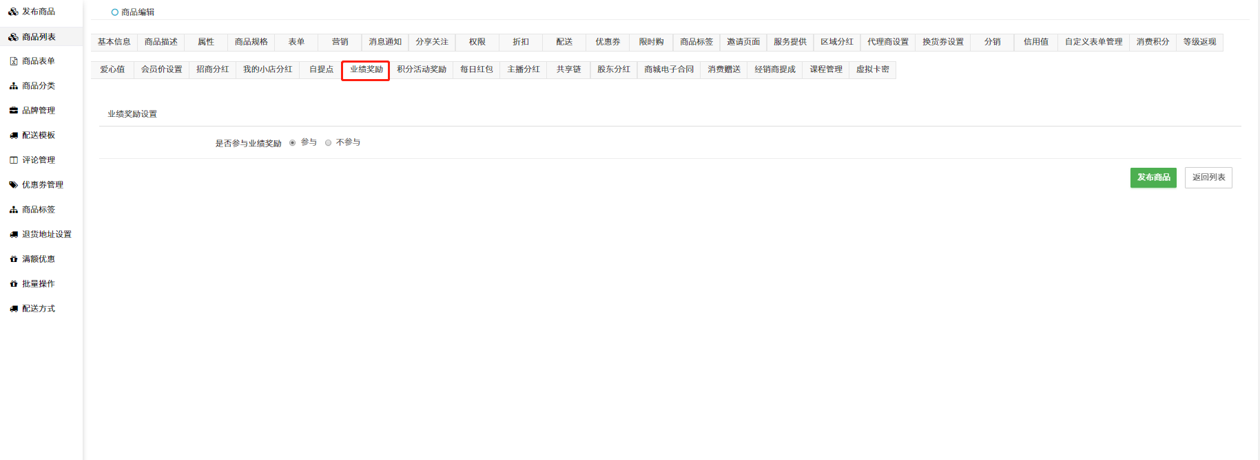 ## 设置该商品是否参与业绩奖励统计,默认为参与状态。