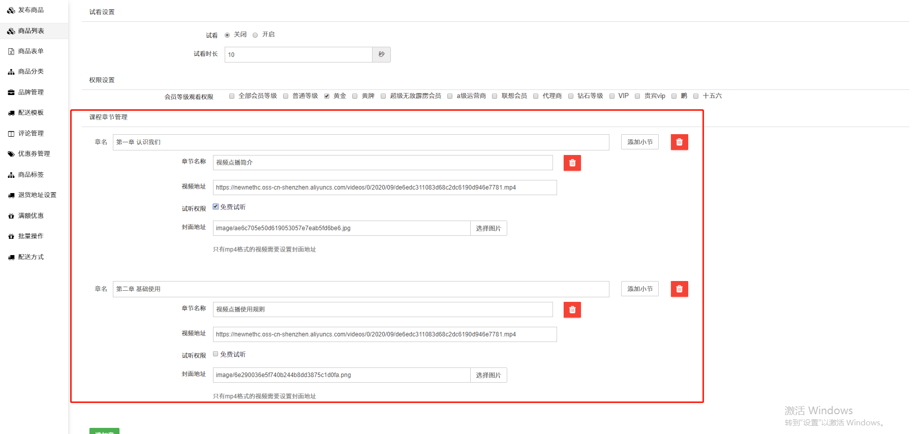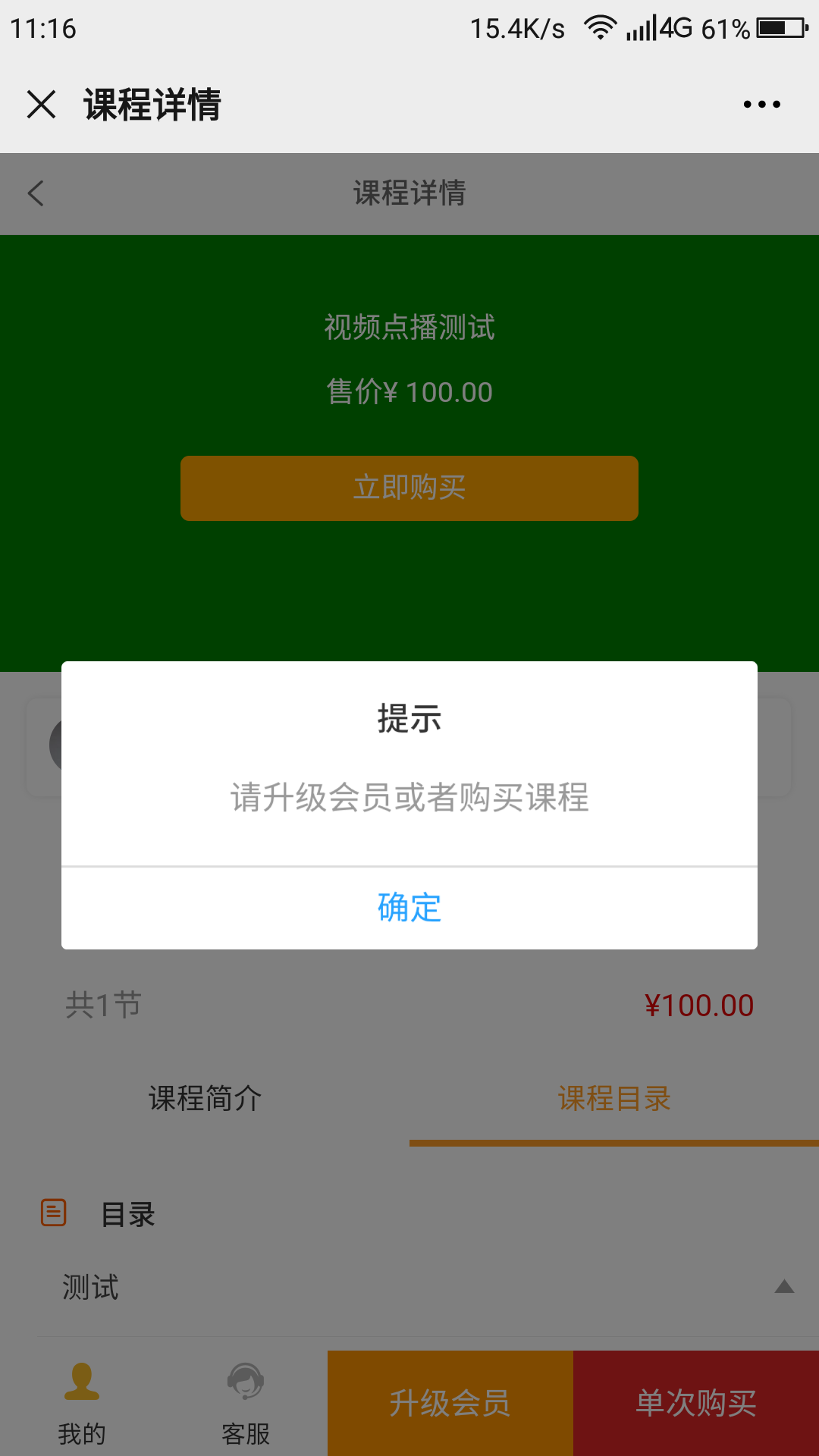 ## 会员等级观看权限:设置达到该等级的会员可以免费观看视频,没有等级观看是提示“请升级会员或购买视频”。
