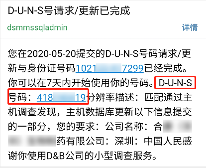 ### 邮件收到邓白氏下发的注册完成申请邮件即表示完成了邓白氏编码的注册事宜。