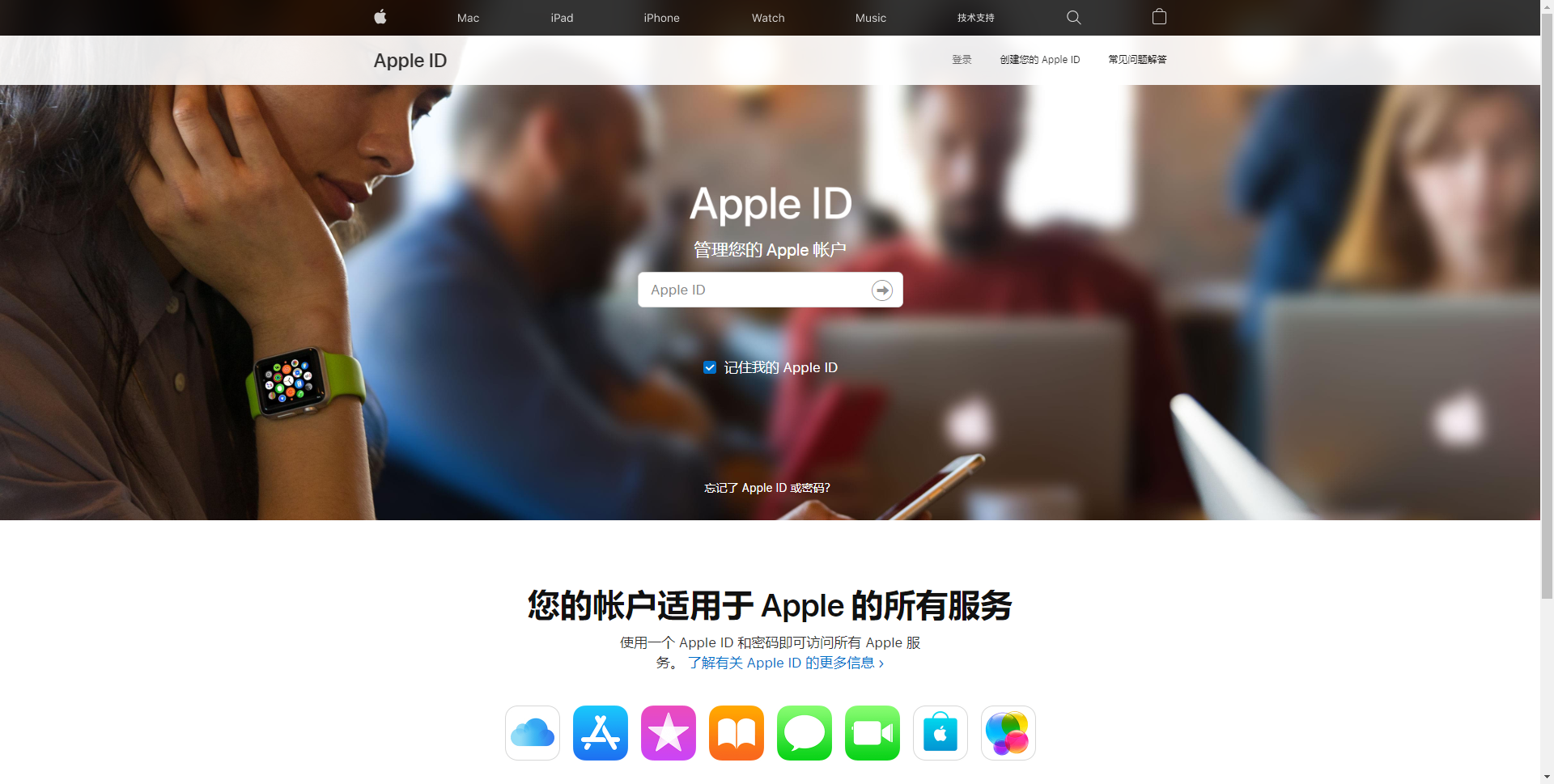 ## 1. 打开苹果官网[**点击前往苹果网站**](https://appleid.apple.com/#!&page=signin)。