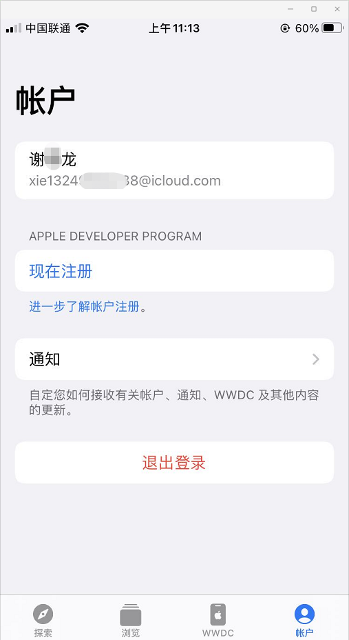 ## 2.打开刚才下载的Apple Developer应用程序,点击**账户**并进行**登录**(使用申请Apple的账号登录)。,然后按照页面提示同意操作即可。