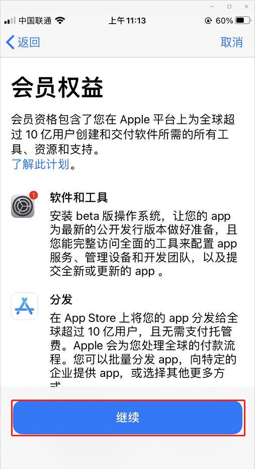 ### 6. 查看您的年度会员资格订阅详情,然后轻点“以每年 ¥688 续订”。