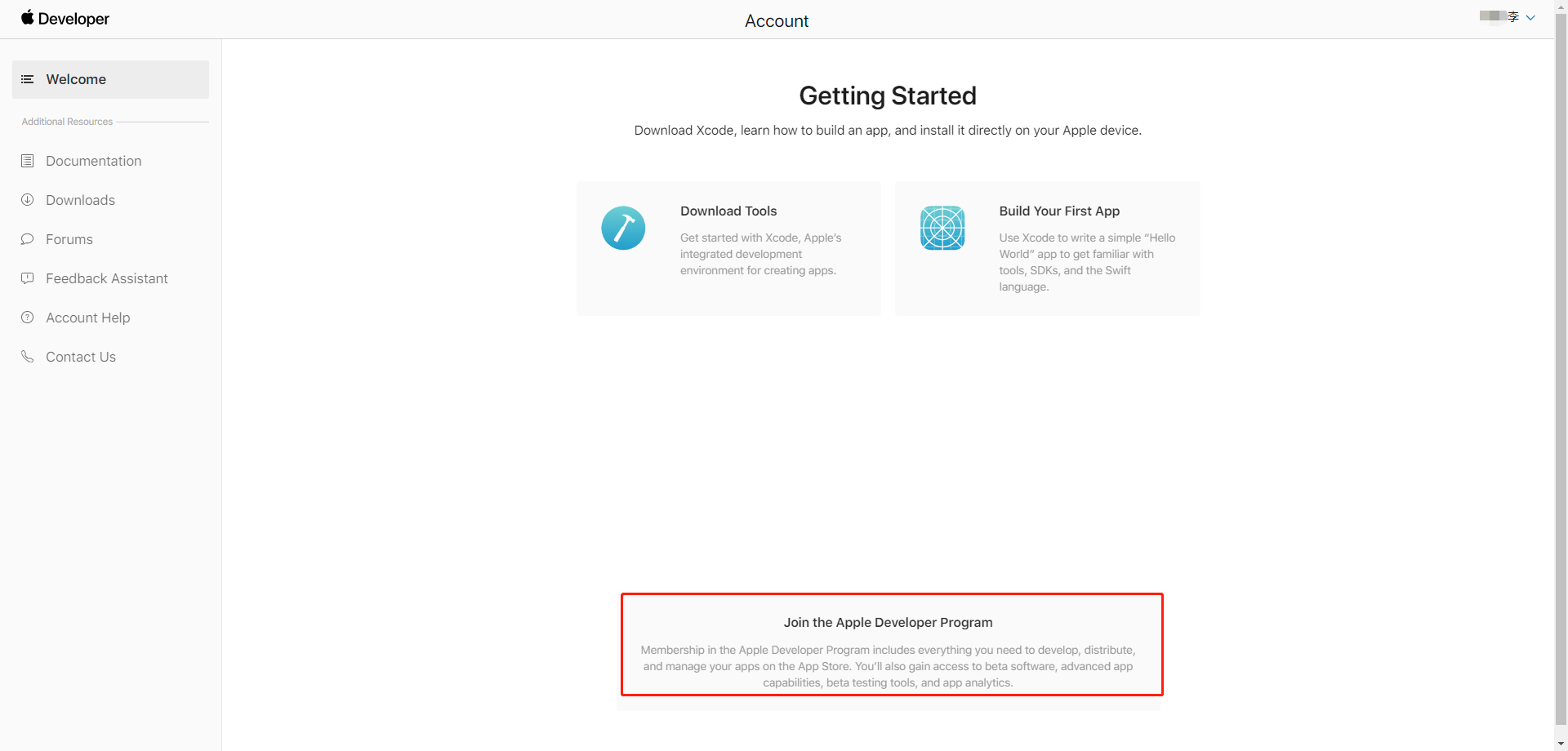 ### 2、**点击【Join the Apple Developer Program】字样。**
