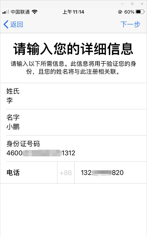 ### 按照后面几个屏幕上的步骤来提供下列信息: