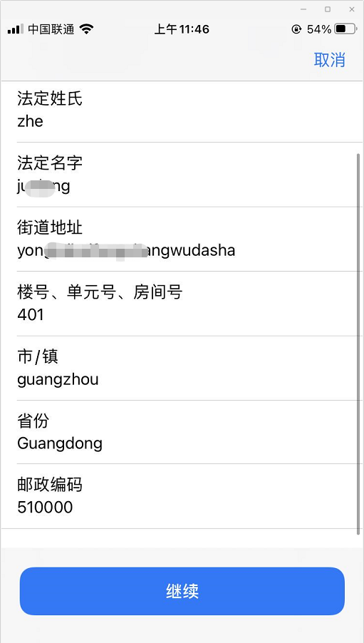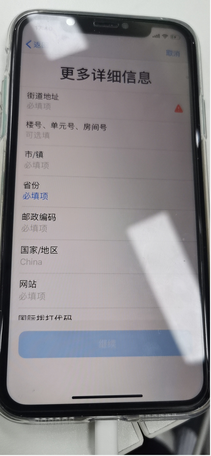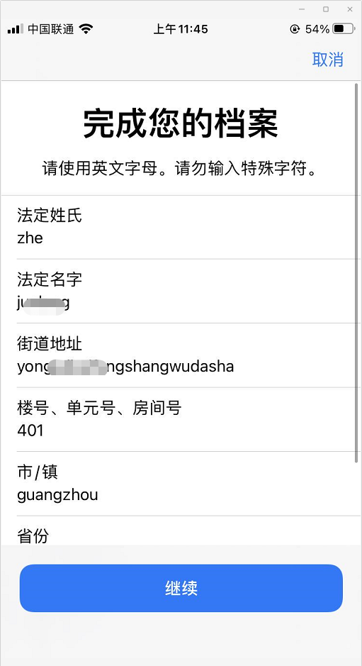 ### **将注册信息如实填写好。填写好之后点击继续按钮下一步。**