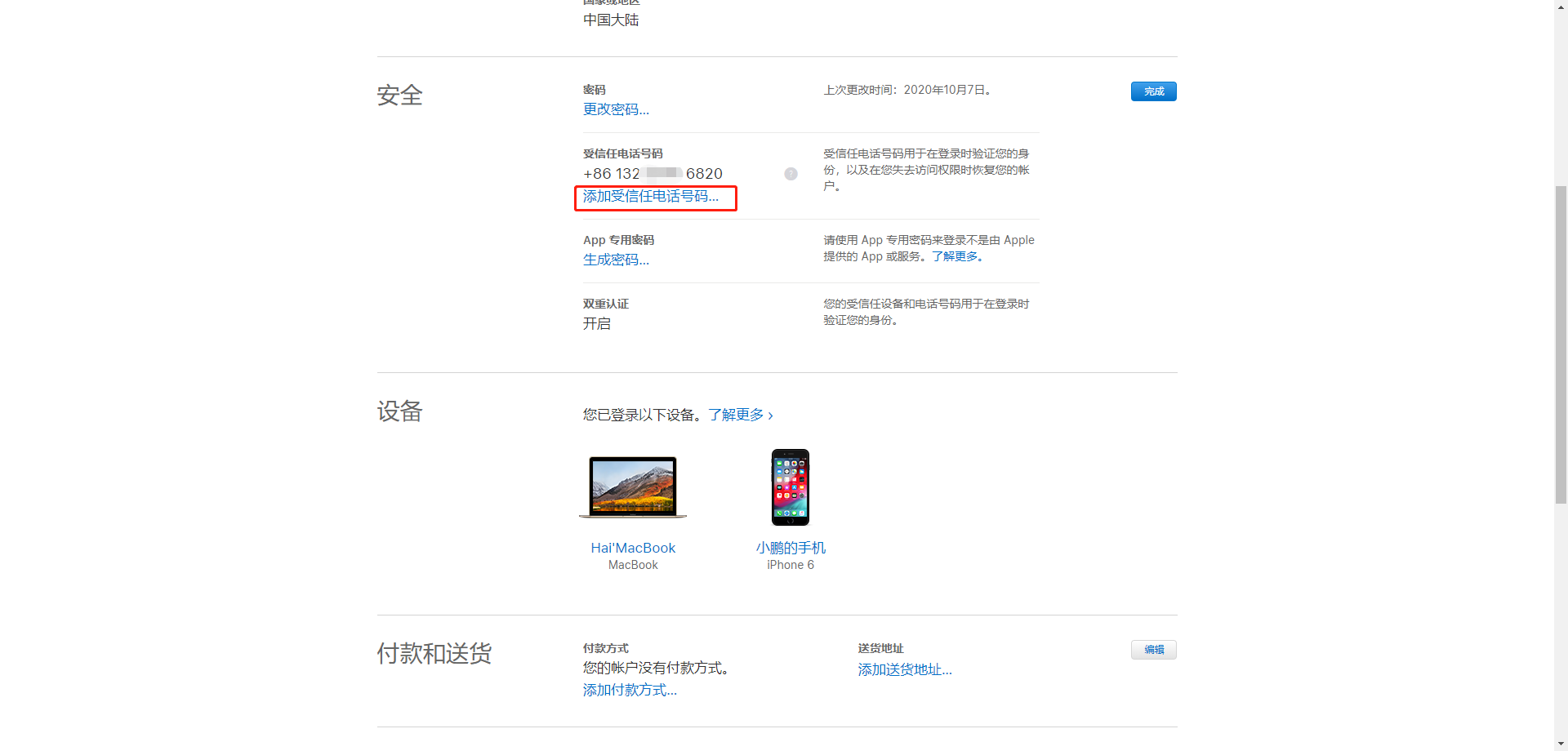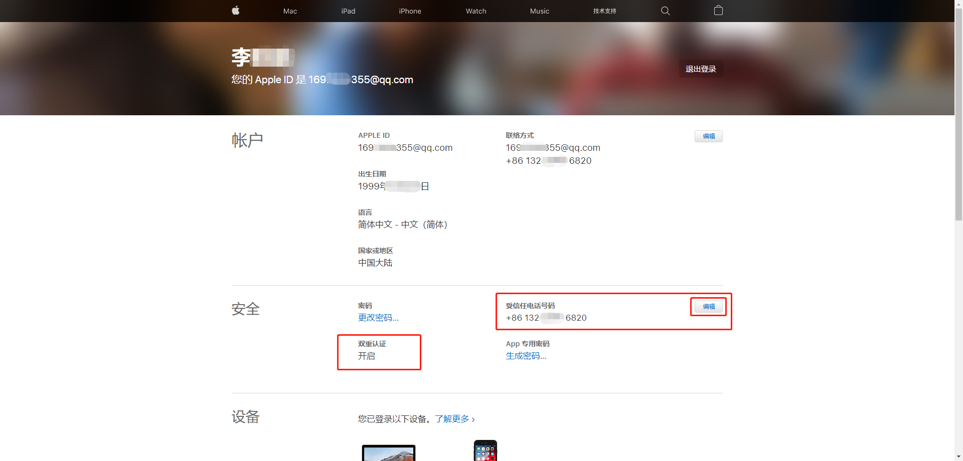 ### 需要一台苹果手机设备登录上该注册苹果账号才可以开启双重验证。