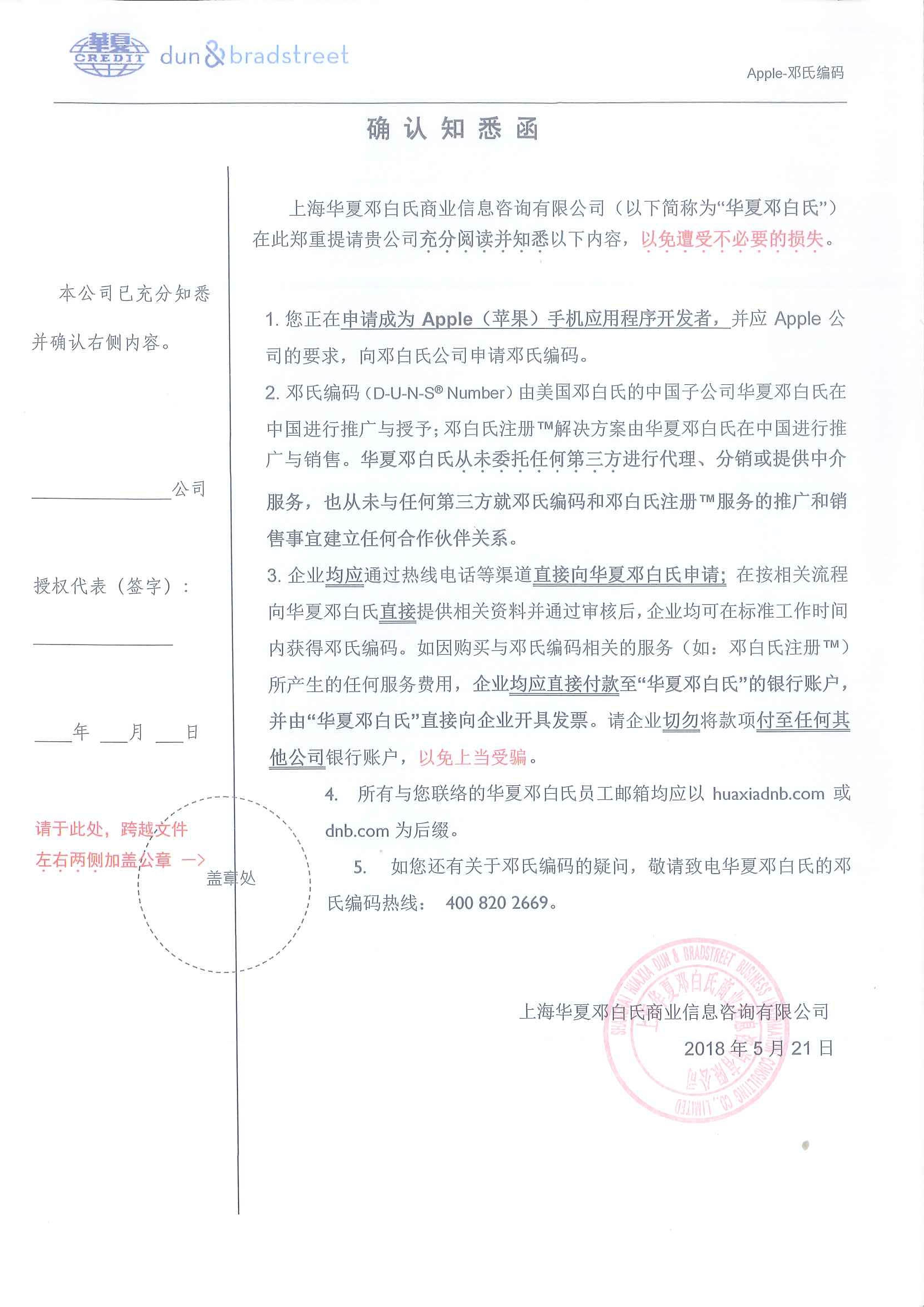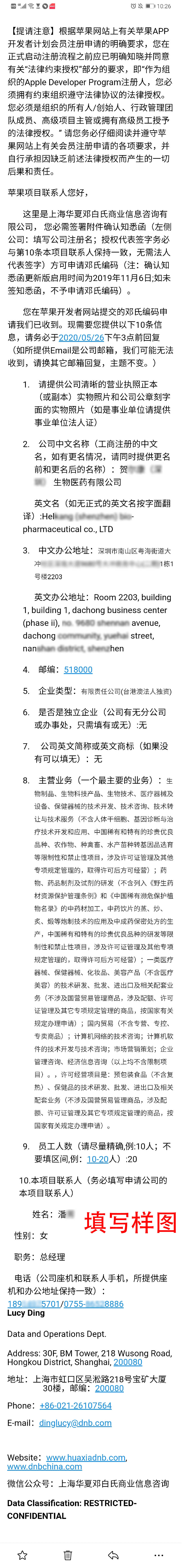 ### 邓白氏编码提交注册后只需要等待审核即可,但是需要每天留意邮箱内邓白氏发送过来的邮件需要按照邮件内容并已邮件的形式回复给邓白氏公司,邮件资料回复给邓白氏后只需要继续等待审核即可,同时还需要留意接听邓白氏拨打的审核电话,如果没有接到请主动联系邓白氏客服人员沟通,一般主要是问你开通开发者账号主要是用来干嘛的?这里最好是说申请苹果官方账号使用。