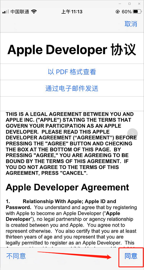 ### 5. 同意Apple DeveloperProgram 许可协议 (英文)