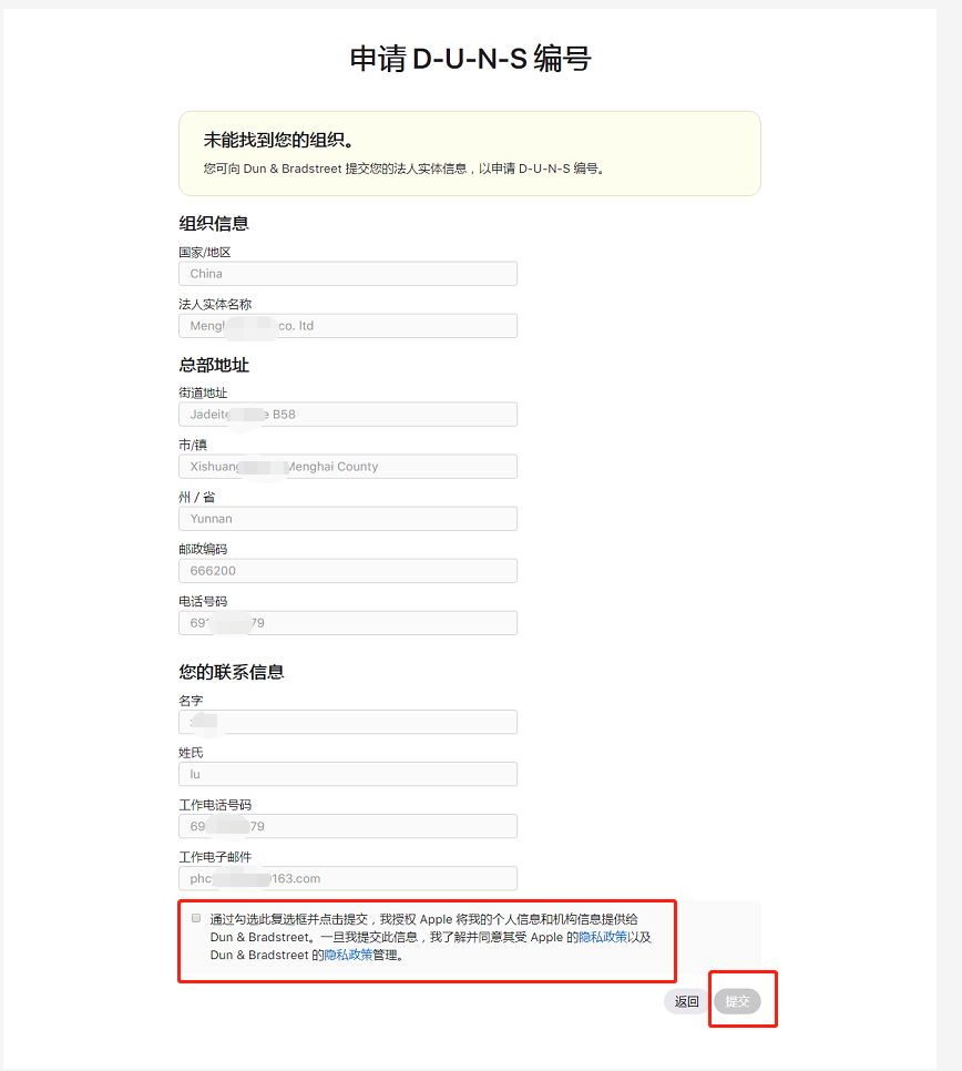 ### 如果邓白氏编码提交查找没有找到注册记录的话,则可以直接提交注册申请。