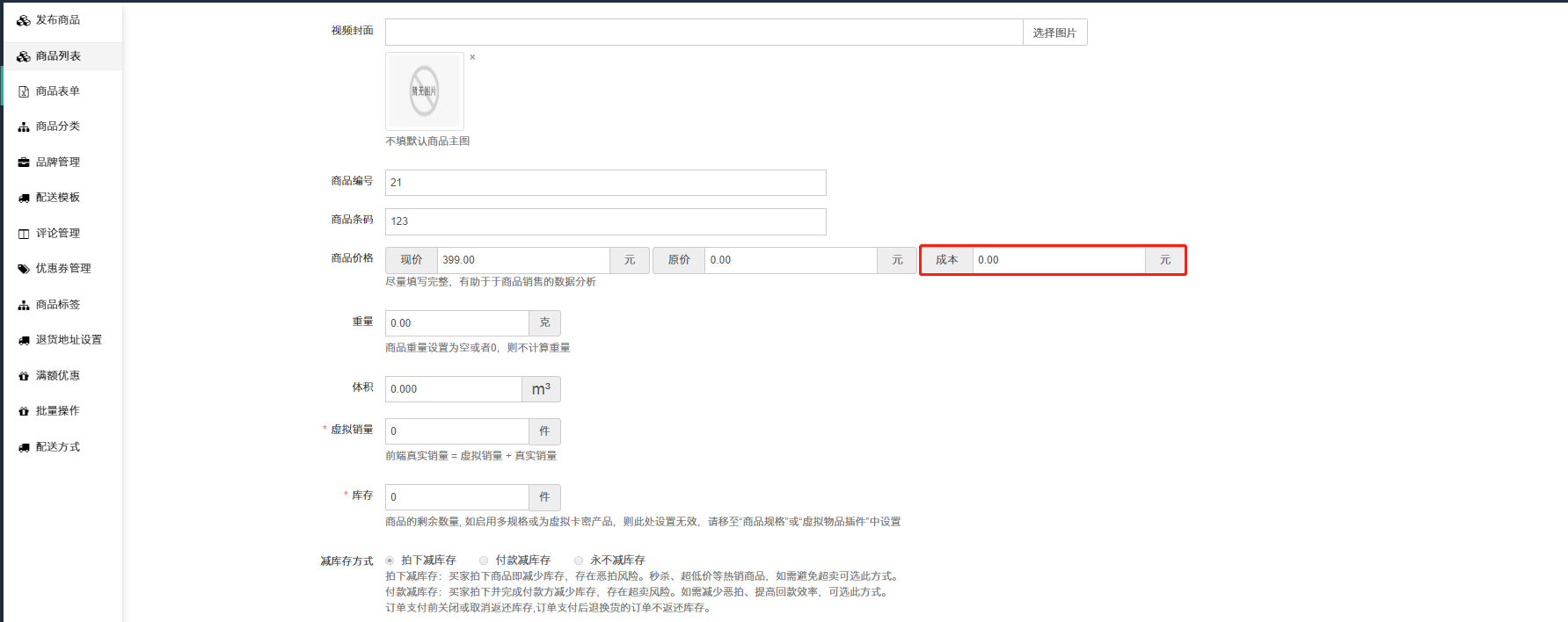 ## 后台正常创建视频点播商品,创建时需要设置商品的成本价格,最终商品的实际支付价格减去成本价格,就是讲师的分红。