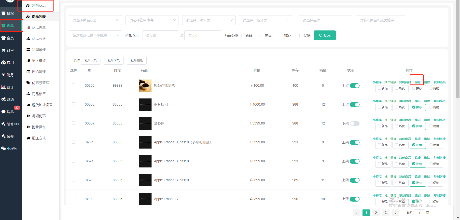 ## 注意:点击发布商品需要完善商品的原有信息才行。