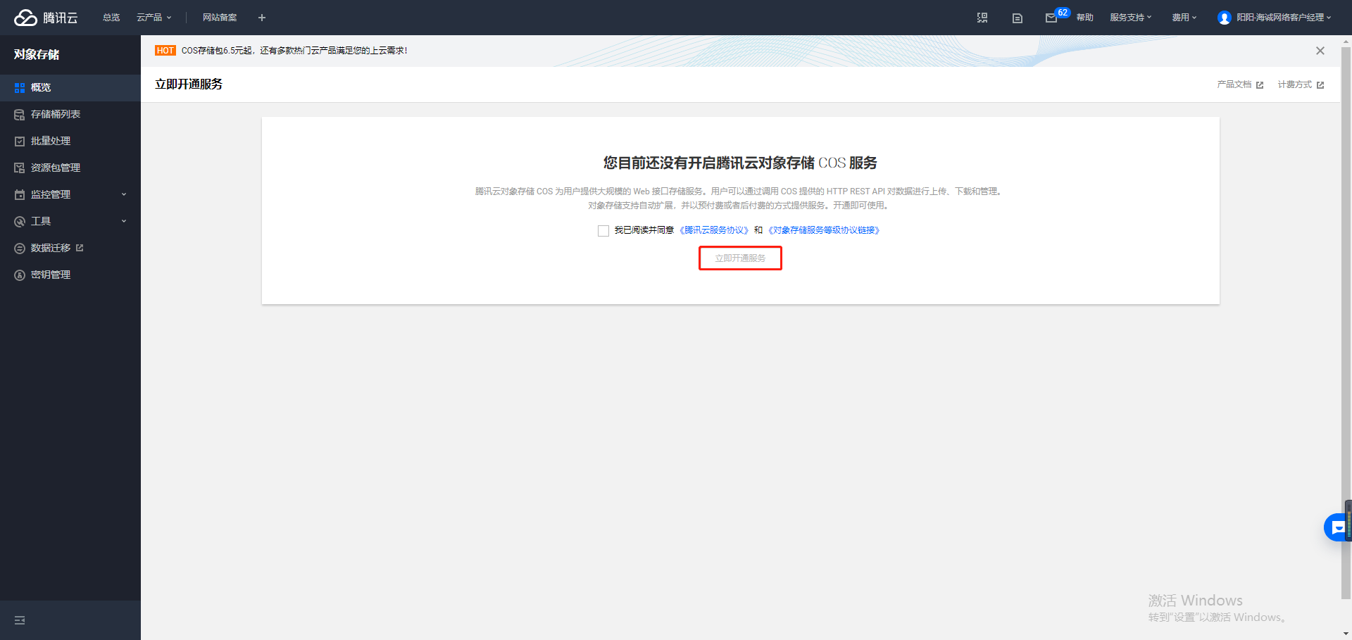 ## 2.开通腾讯云对象存储cos服务(如已经开通过,则跳过这步,直接到第3步)。