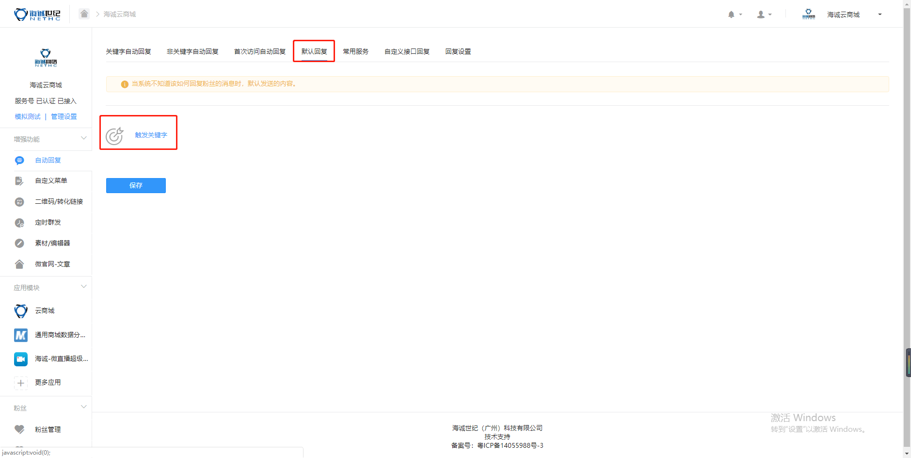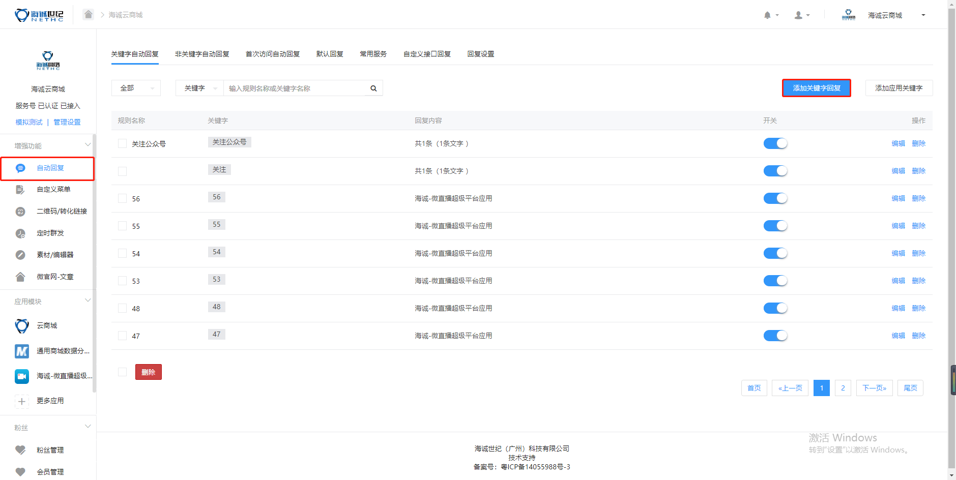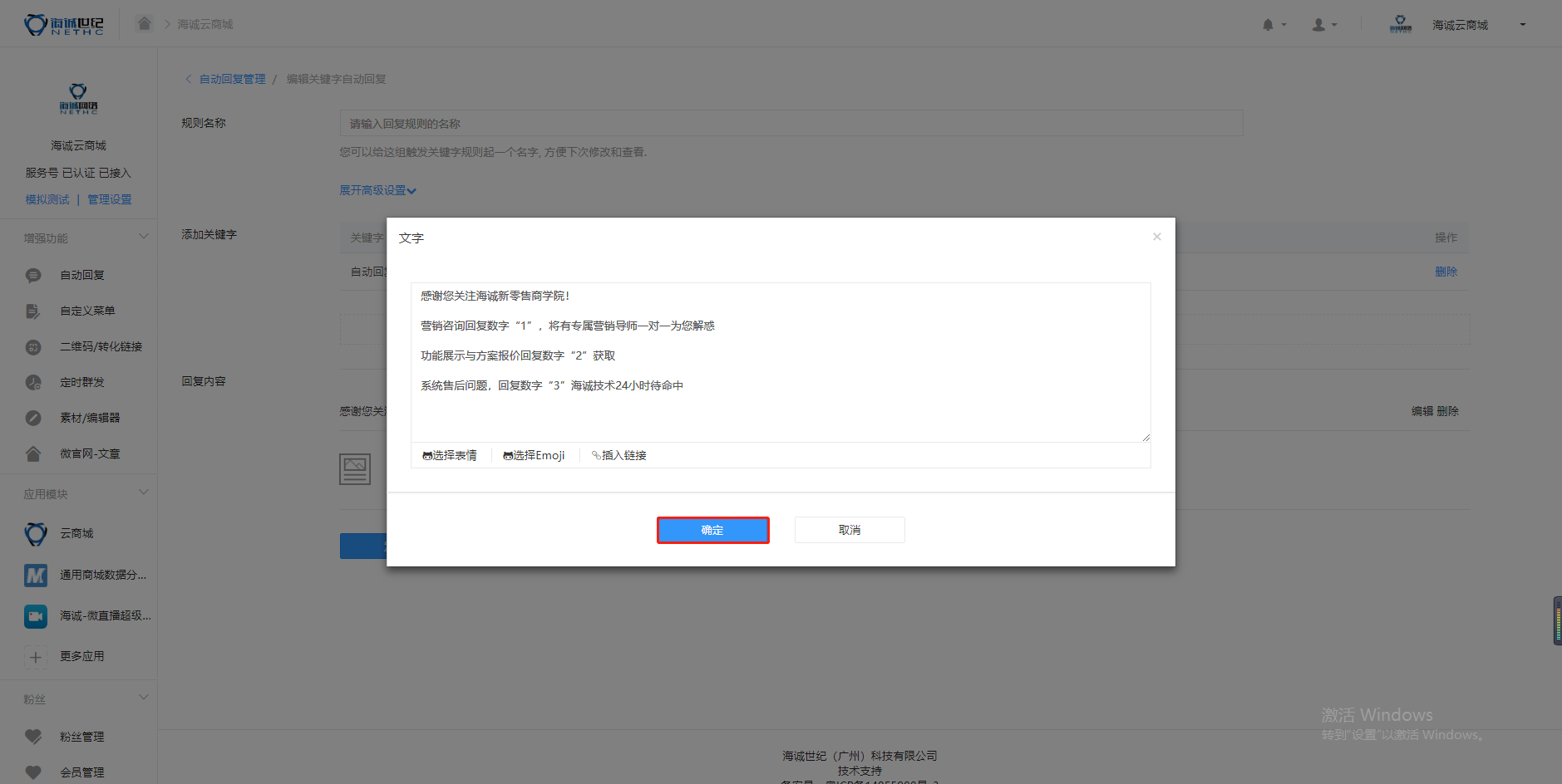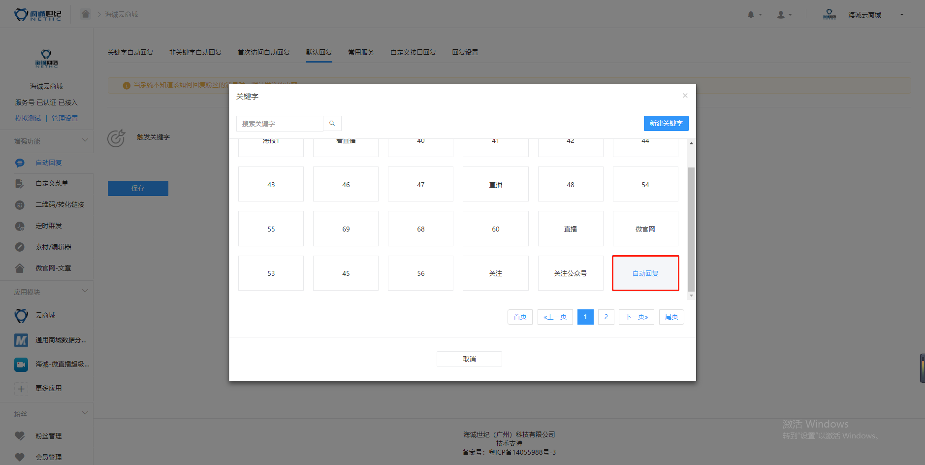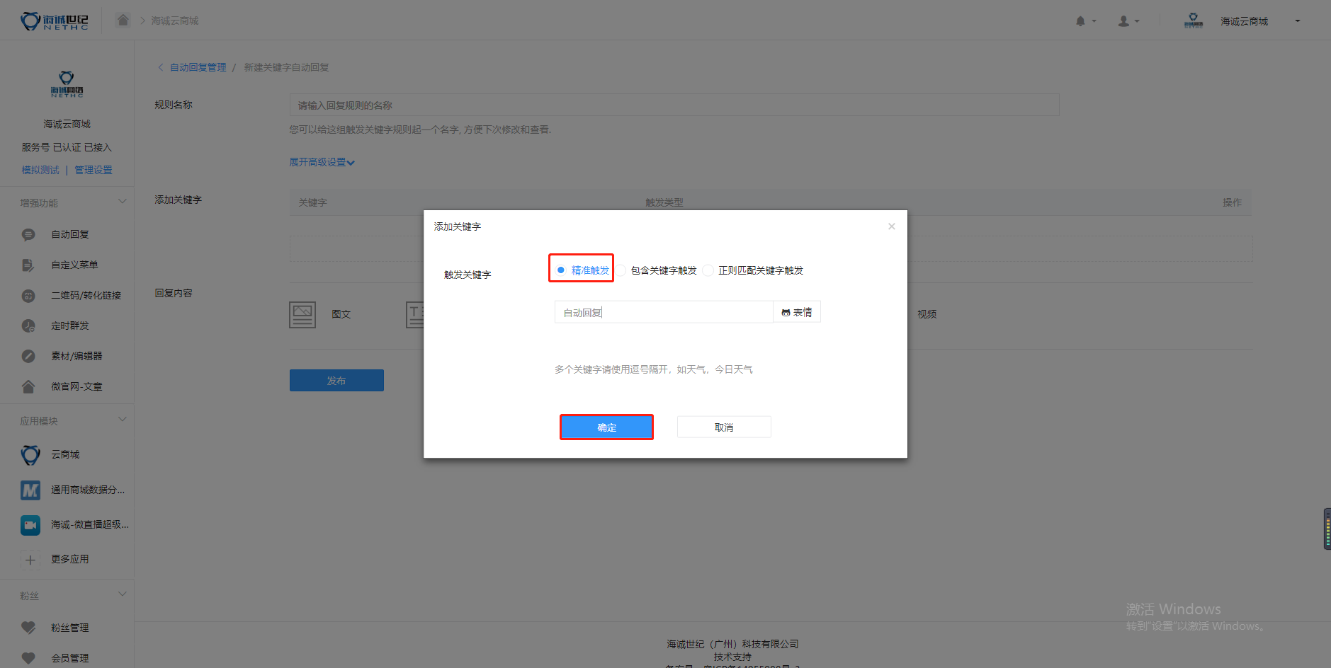 ## 【商城后台】【关键字】【回复】