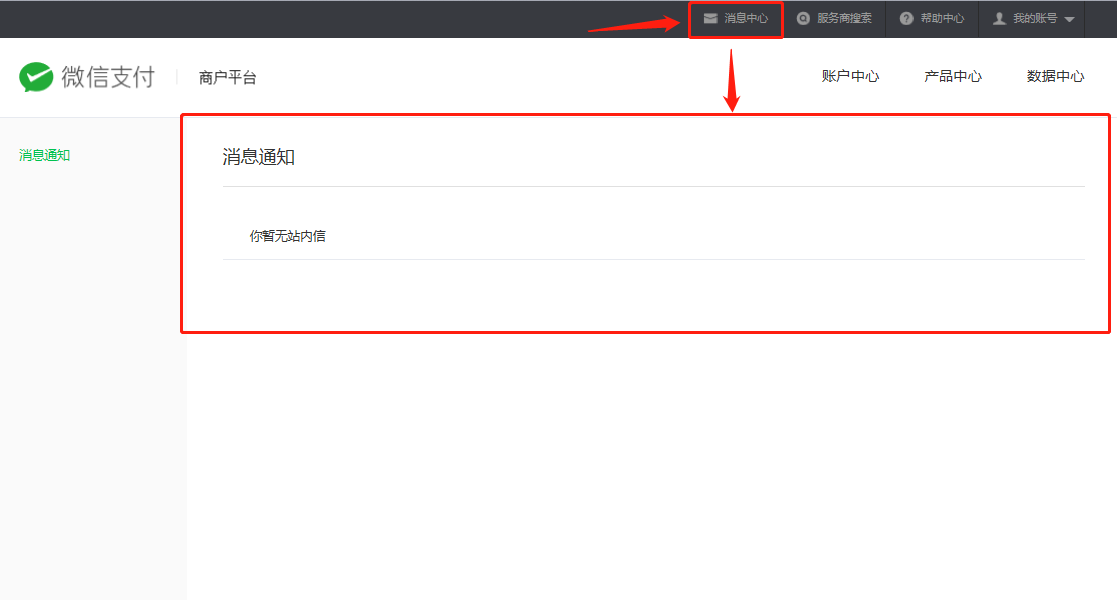 [链接]()# :-: **如何查看支付商户平台站内消息**