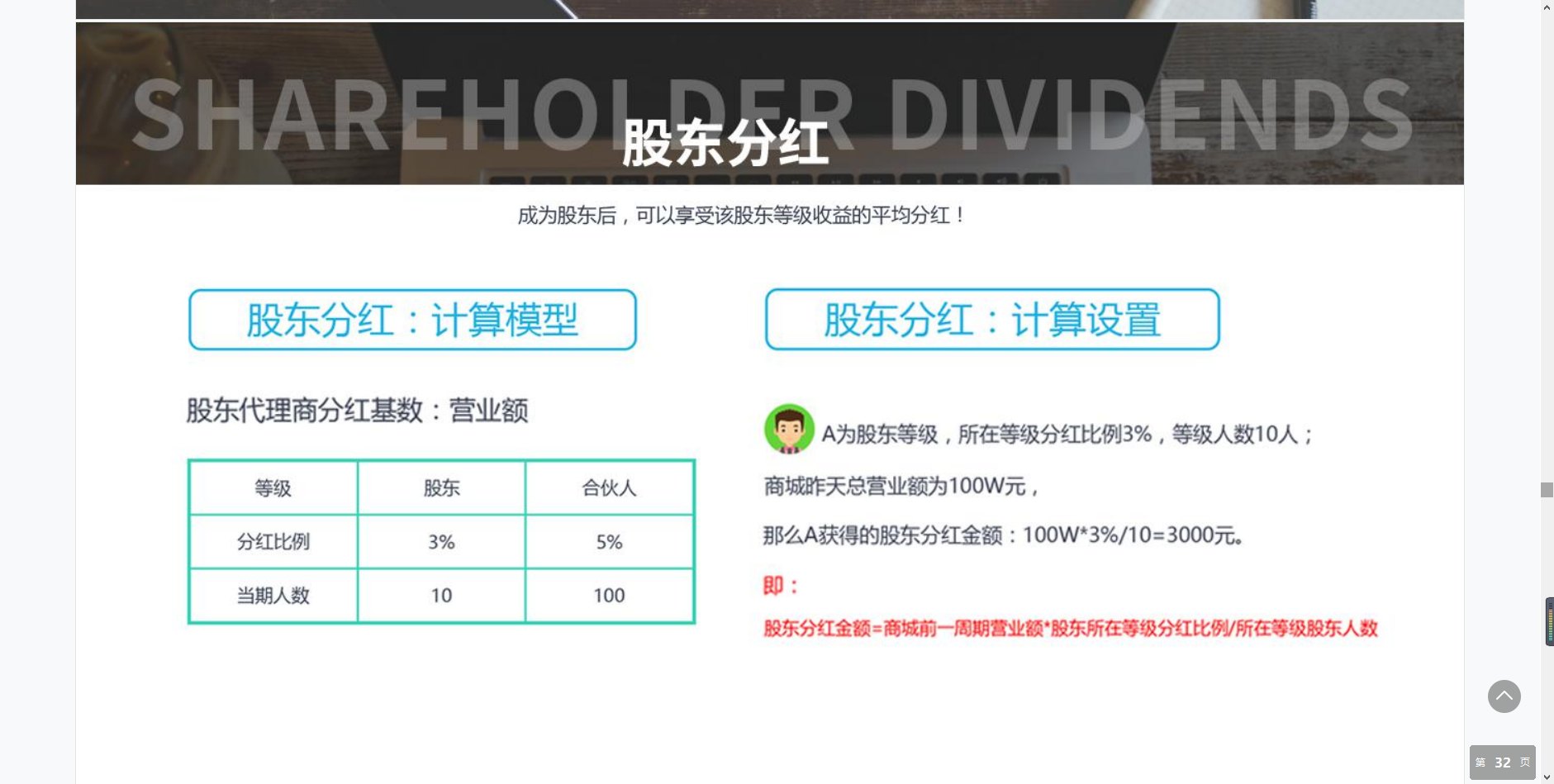 ## 股东分红依赖于经销商等级,(股东分红是基于经销商上的)设置指定经销商等级对应的股东分红比例,商城每天/周/月拿出前一周期营业额/利润的百分比平均分配给该等级经销商
