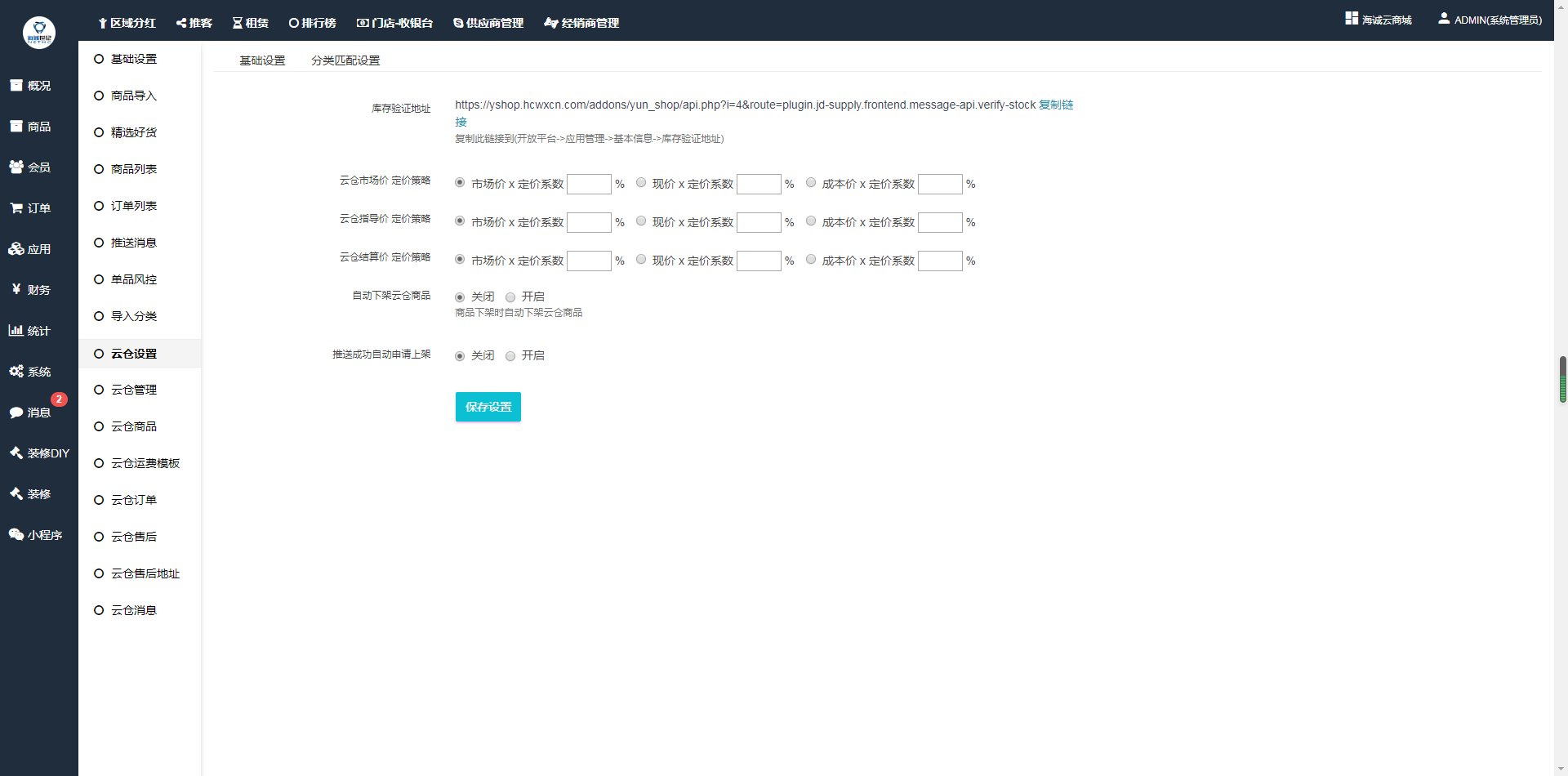 ## 【聚合供应链】【云仓】【设置】