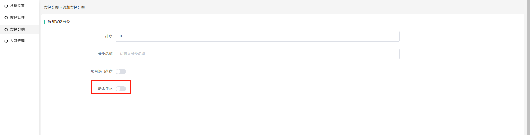 ## 添加案例前需要创建案例分类,否则无法正常发布,创建后记得勾选显示。