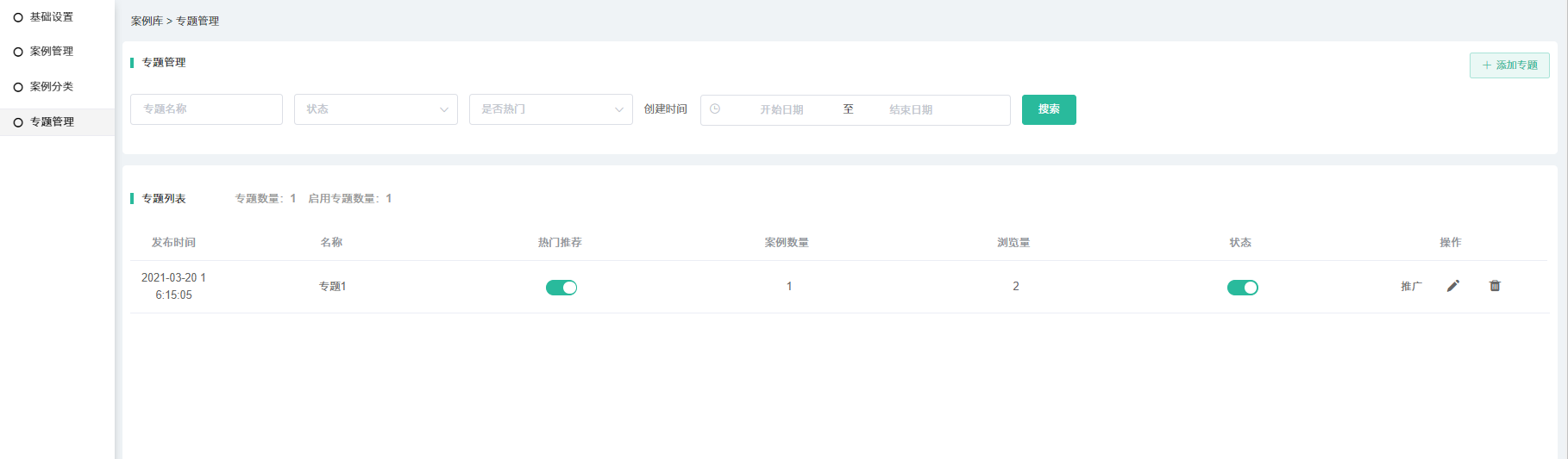 # :-: **专题管理**