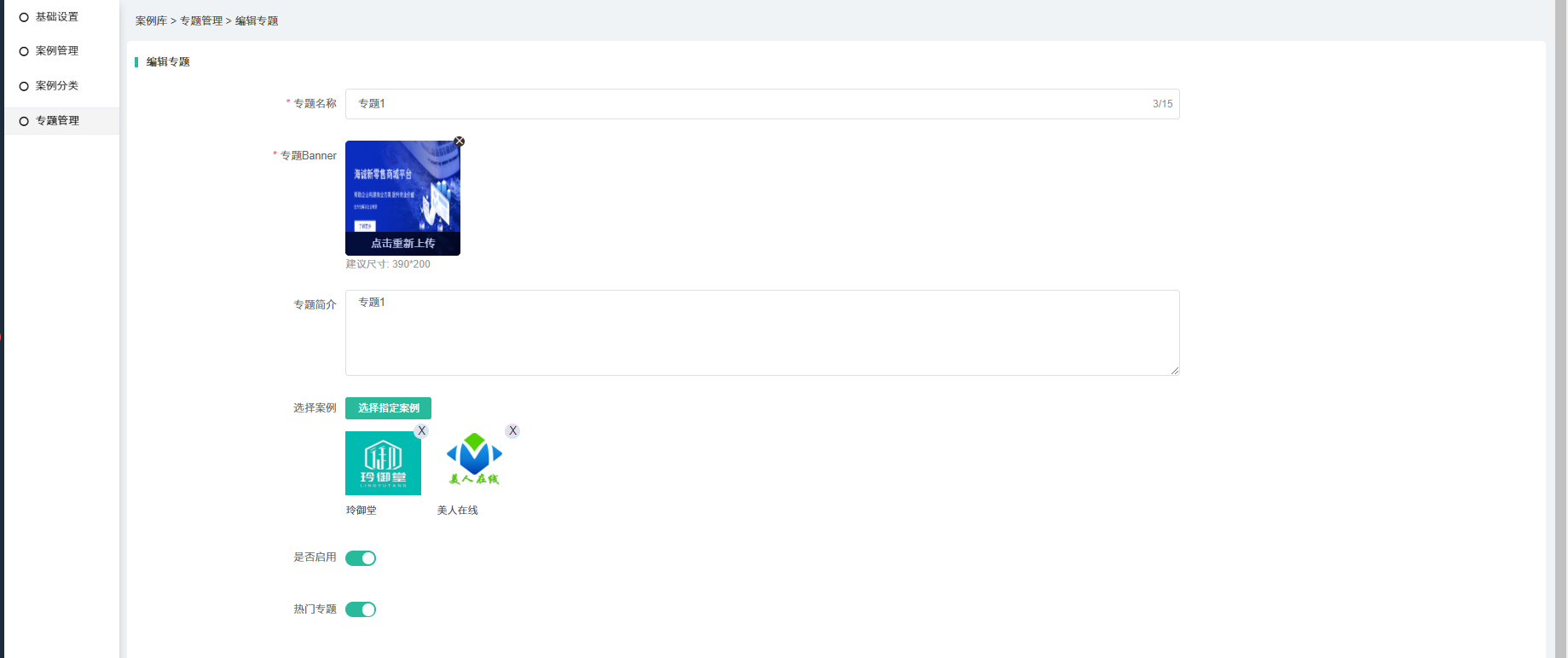 ## 1.添加专题(注意:添加后记得勾选显示)