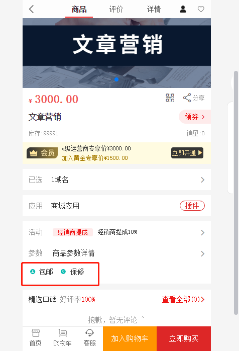 ## 在商品详情页商品标题下方显示的服务提醒**标签**,如七天无理由退货、海外直邮、正品保证等,最多支持定义6个标签。