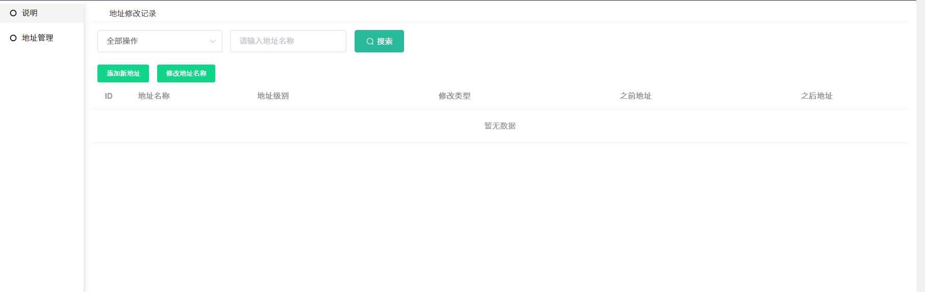 >[info]## **注意**:地址库内地址只能增加不能删除,如非特殊情况,请勿随意操作。