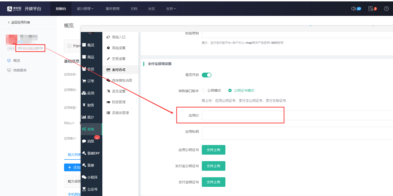 ## 5、商城后台应用ID对应支付宝应用appid