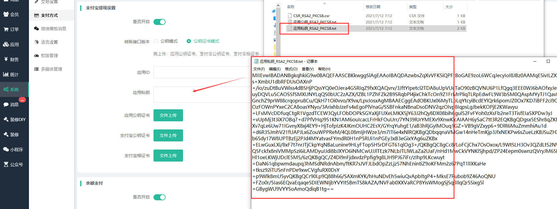 ## 4、商城配置证书密钥