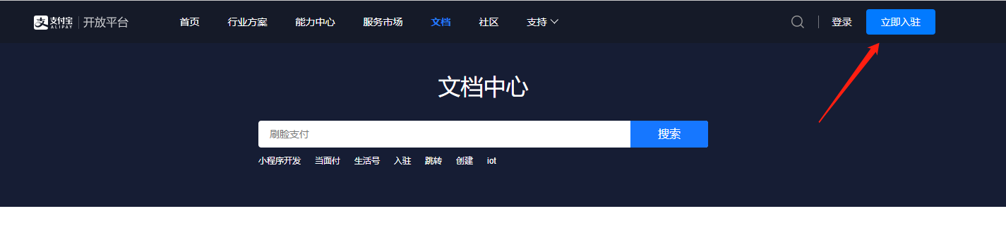 ## 二、企业支付宝账户入驻支付宝蚂蚁金服开放平台(open.alipay.com),首次入驻,选择入驻“提供第三方服务+自研开发服务”