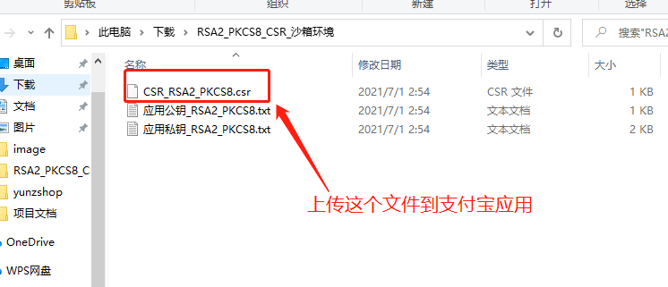 ## * 生成CSR并保存:在生成CSR的同时, 会生成一个包含CSR、应用私钥、应用公钥三个文件的zip压缩文件并下载到本地, 解压后即可获取 CSR 文件