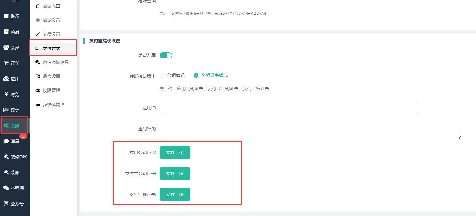 ## (3)上传支付宝证书