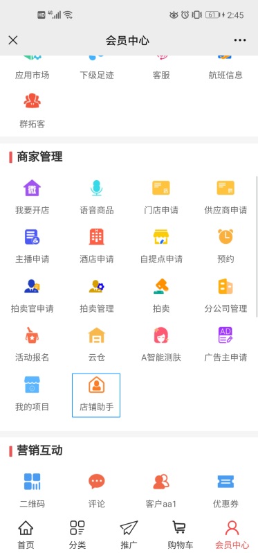 功能路径:会员中心-商家管理-店铺助手