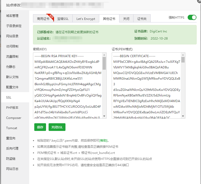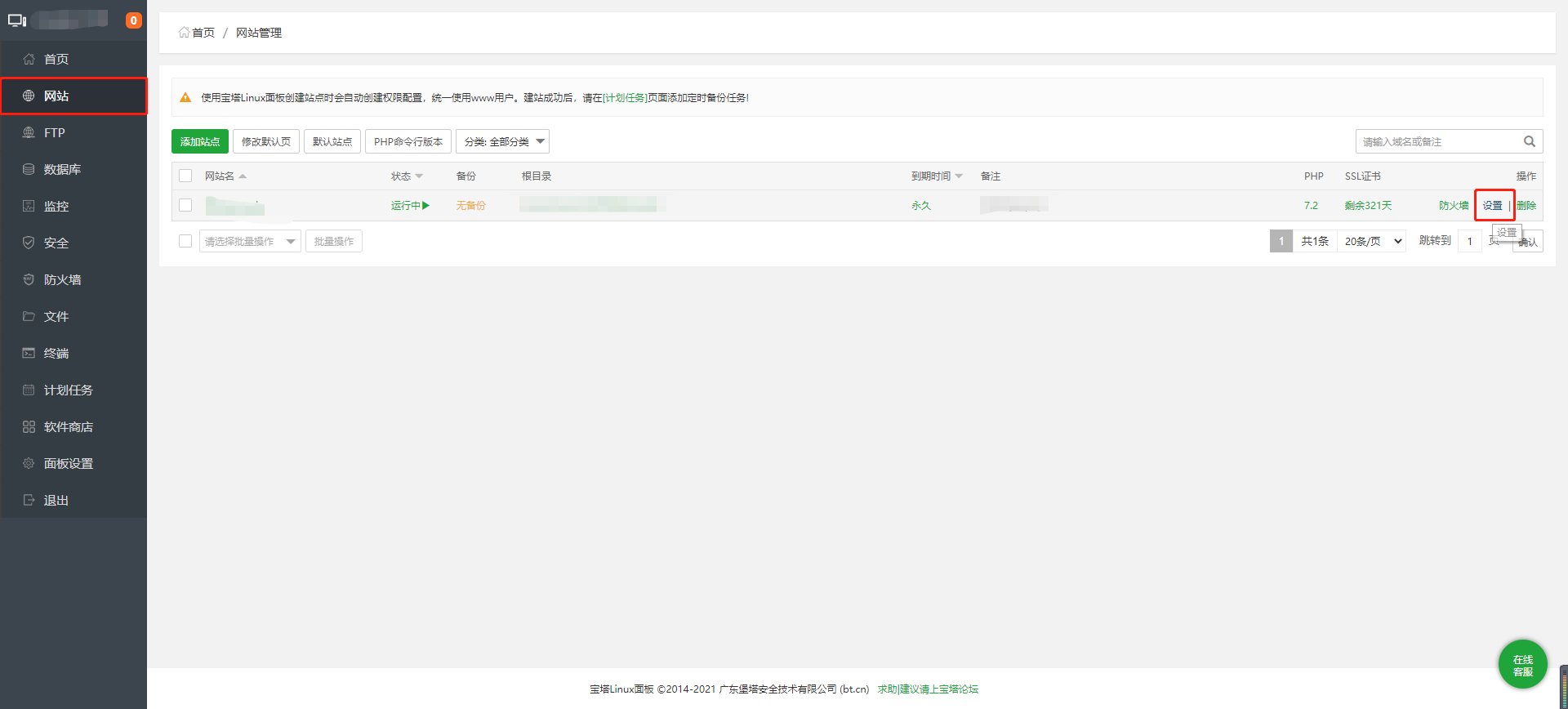 ## 一、登录宝塔账号,点击网站--设置--ssl--其它证书(不清楚登录地址,可跟客服确认)