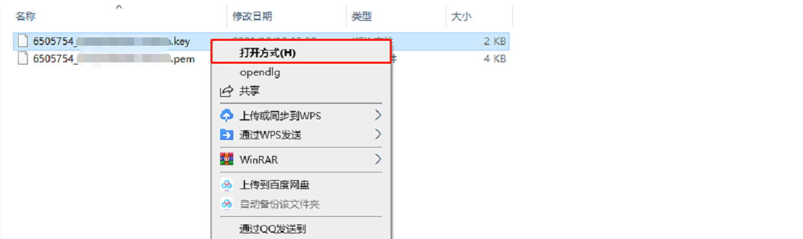 ## 二、解压缩已申请好的证书文件,解压后得到以下两个文件