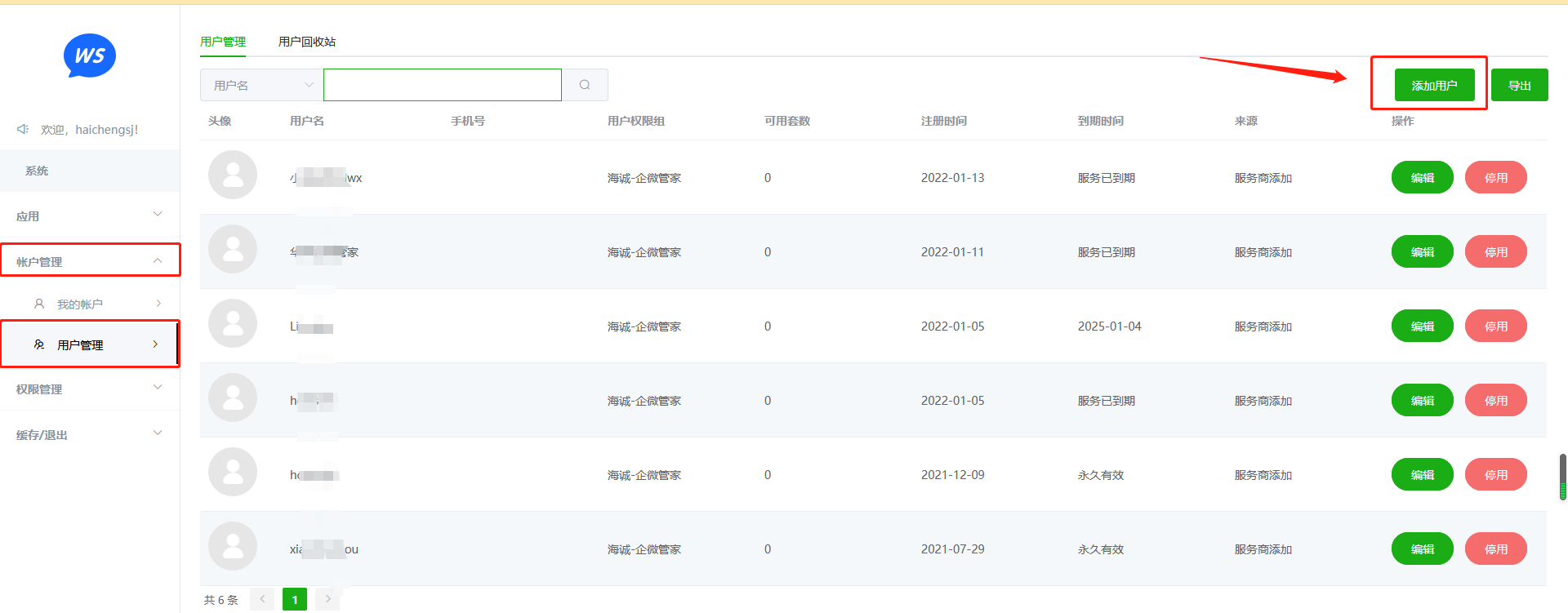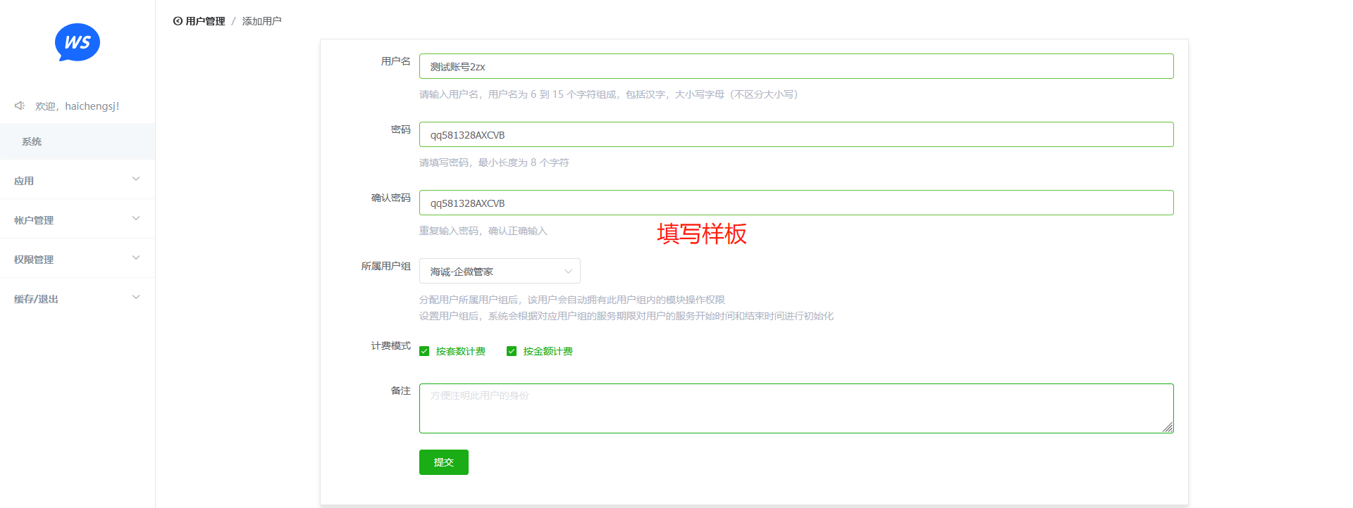 ## 4、给客户创建一个账户。**账户管理——用户管理——添加用户**。按照下方截图样板示例填写即可。账号密码内容自行自定义填写。