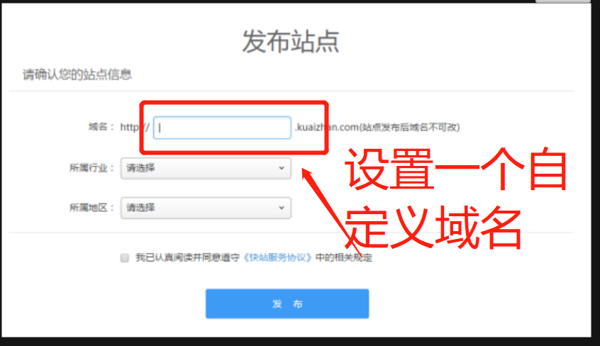 14.按自己需要随意设置一个自定义域名,点击发布。