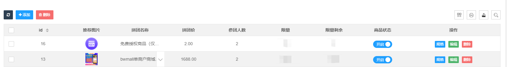 4. 添加拼团商品后必须要选择规格后才能上架!