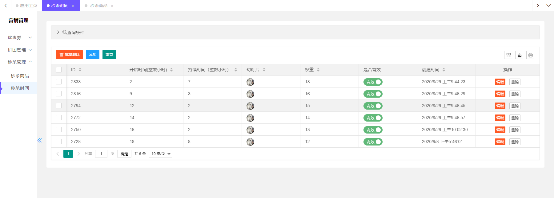 可设置秒杀的开启时间和持续时间,时间都为整数