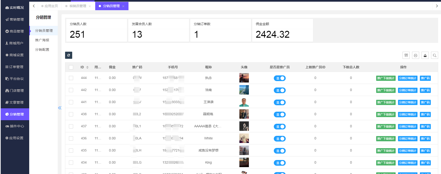 1. **位置**:分销 > 分销员管理