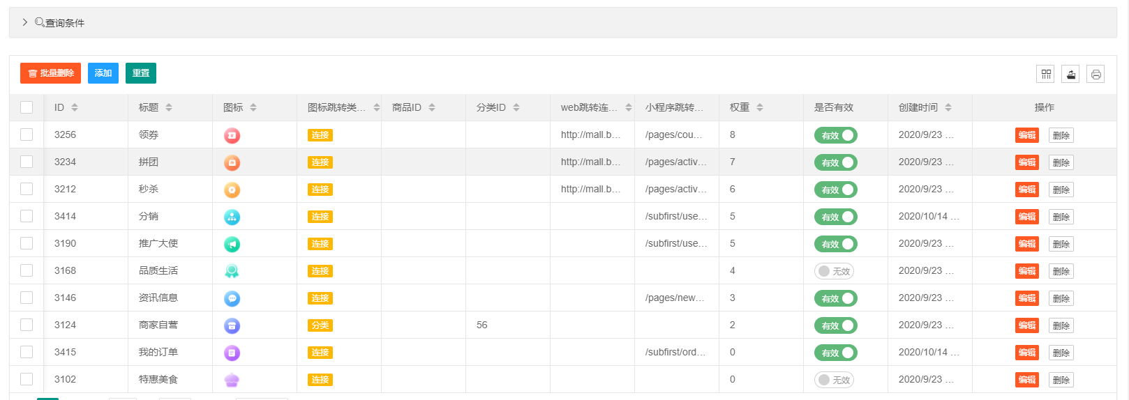 **位置**:商城设置>首页图标