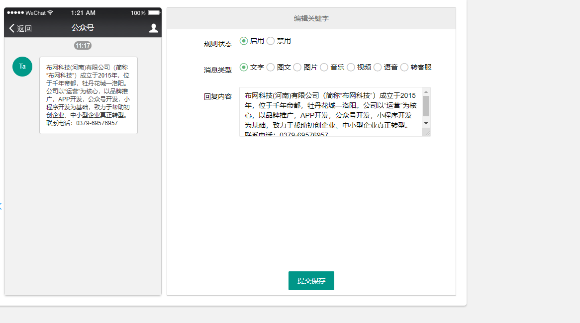 - 回复规则管理