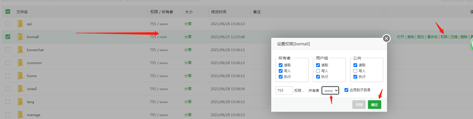 1. 下载的bwmall.zip上传到并解压到网站根目录app/下,并调整目录的权限为755