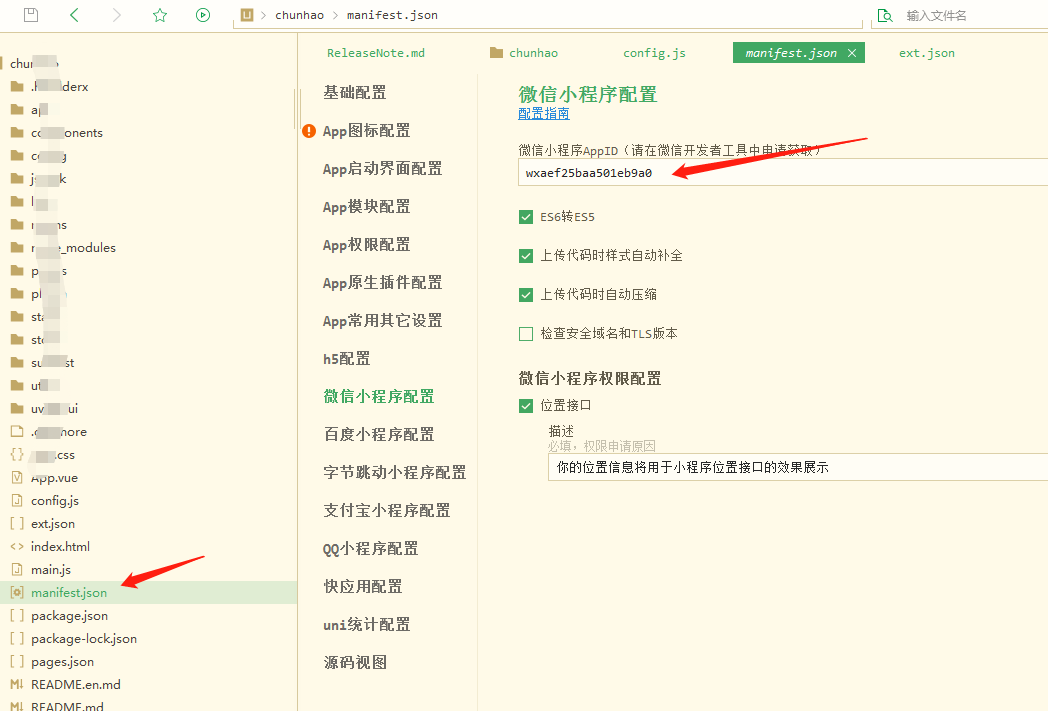 7 配置文件manifest.json,微信小程序AppID填写进去