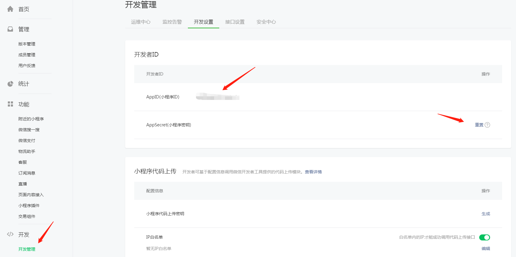 3 找到菜单**开发管理**进行**开发设置**