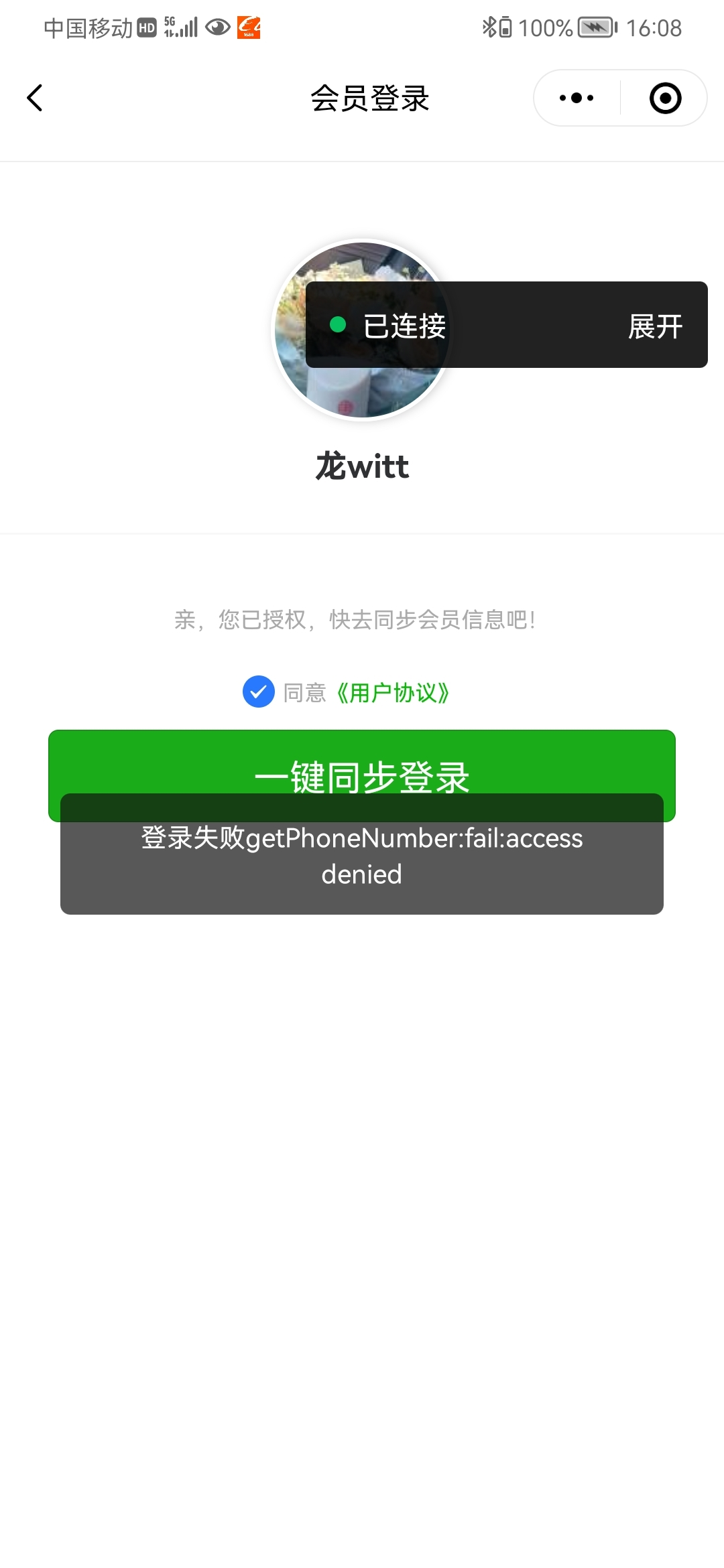 ### 调试到登录页面如果小程序获取用户手机号报错 [请检查微信小程序是否已经进行过微信认证]