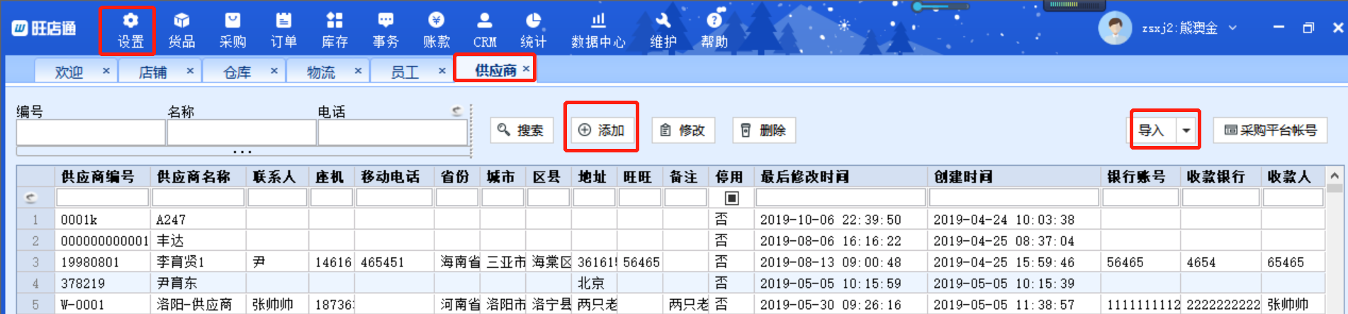 点击【设置】-【基本设置】-【供应商】-【添加】/【导入】。