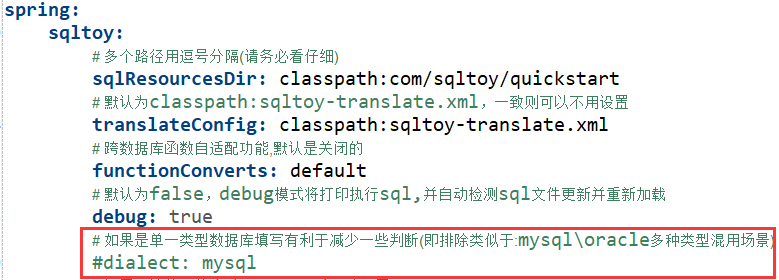 * 小提示:如果是单一类型数据库,推荐配置sqltoy的方言,会减少一些判断